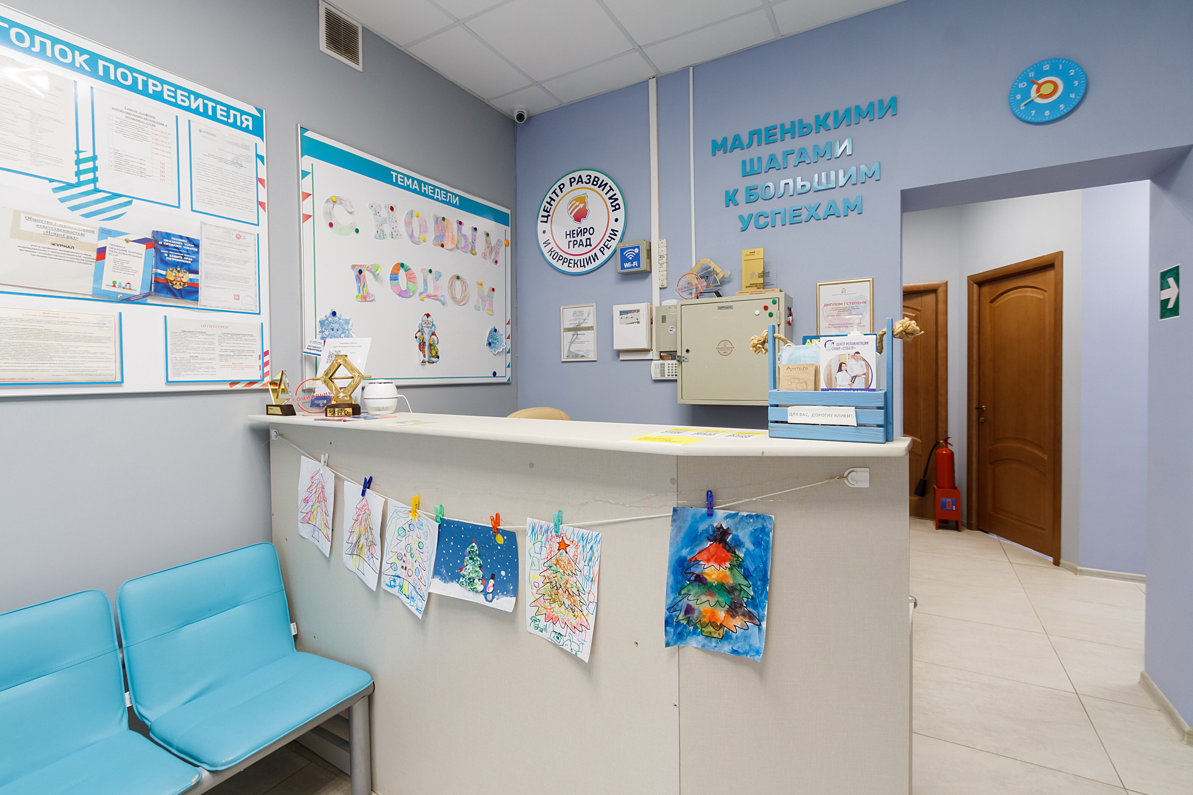 Сотрудники постоянно напоминают о записи и всегда готовы изменить время занятий под наши нужды. Мы посетили занятие с дефектологом Екатериной, которая дала четкие рекомендации и домашние задания. Она объяснила главную проблему и рассказала, чему будем уделять внимание. По её мнению, пока рано обращаться к психологу, а к нейропсихологу лучше пойти примерно в 5 лет для работы с тревожностью. Поскольку у ребёнка нет базового понимания речи, нам подсказали, как правильно с ним общаться.